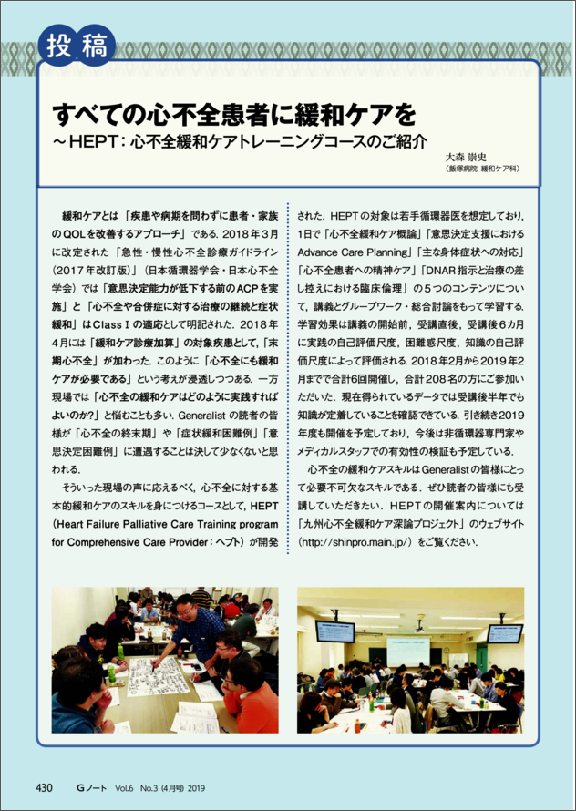 すべての心不全患者に緩和ケアを~HEPT:心不全緩和ケアトレーニングコースのご紹介〜【大森崇史】