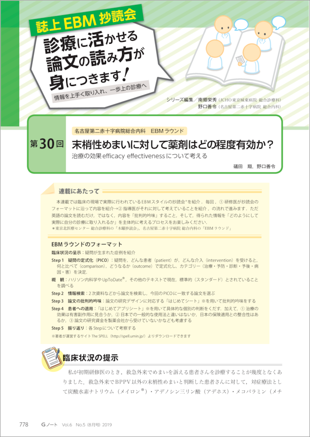 第30回 末梢性めまいに対して薬剤はどの程度有効か?【礒田 翔,野口善令】