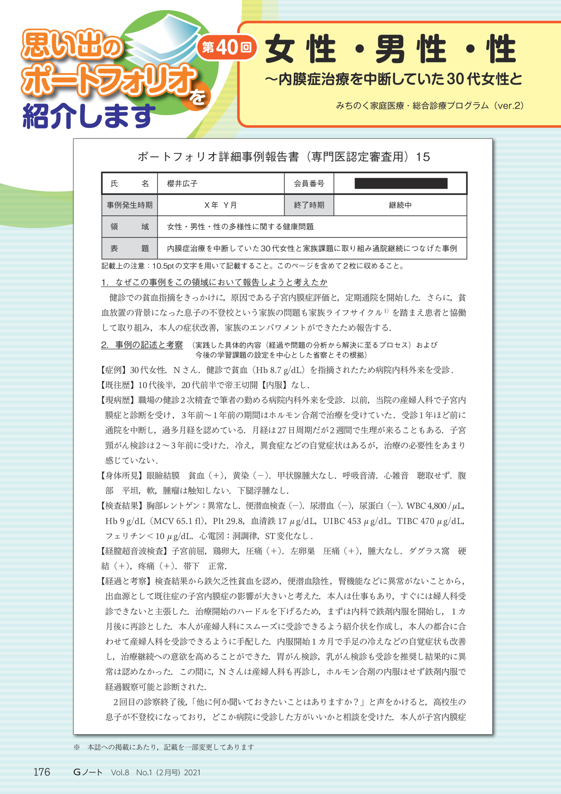 第40回 ⼥性・男性・性の多様性 〜内膜症治療を中断していた30 代女性と家族課題に取り組み通院継続につなげた事例〜【櫻井広子,本郷舞依】