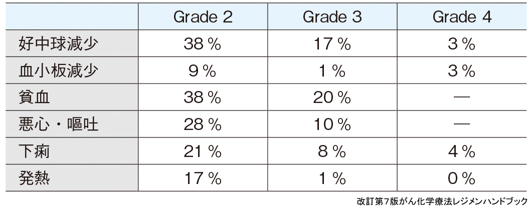 - ① 悪心・嘔吐:CDDPは90%に急性,30~50%に遅発性の悪心・嘔吐の発現があり得る.CDDP,CPT-11では患者の症状に留意し必要に応じて制吐薬の追加を行う.
