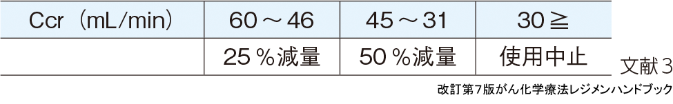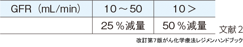 - 白血球数 3,000 /mm3以上かつ血小板数 10万/mm3以上であっても,白血球数または血小板数が急激な減少傾向にあるなど,骨髄抑制が疑われる場合