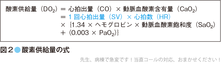 酸素療法をすみやかに開始することはとても大切です.患者を低酸素の状態から一刻も早く離脱させなければなりません.その重要な根拠として,図2の酸素供給量の式をぜひ覚えておきましょう.