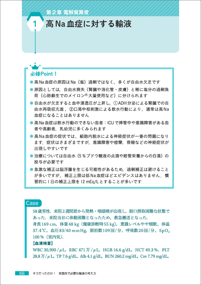 目の前の患者に必要な輸液が今度こそわかる!外来・病棟で輸液を使いこなすために必要な情報を,症例を交えて解説.輸液の基本はもちろん,個々の患者に合わせた輸液の処方から治療までがこの1冊で絶対にできる!