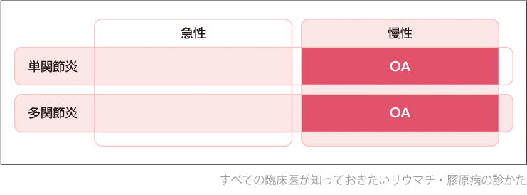 - OA は慢性単関節炎または慢性多関節炎をきたす.