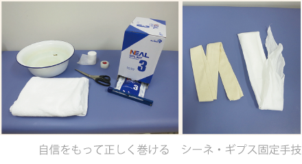 )を測り,その2倍の長さに数cm足した長さでスプリント材を切り出します(短くなるよりは,長くて余る方がよいです).