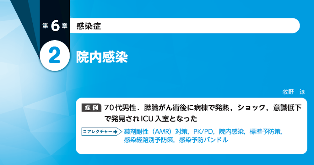 ▶︎ 術後の予防的抗菌薬あるいは各感染症に対する抗菌薬の適正使用(選択,投与量,投与間隔,投与期間)を薬剤師とともに各科の主治医へ提案し,薬剤耐性菌を生じさせないことも 集中治療医の重要な役割である.