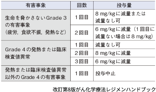 投与当日の好中球数が2,000/mm3 未満であれば投与の延期を考慮する.