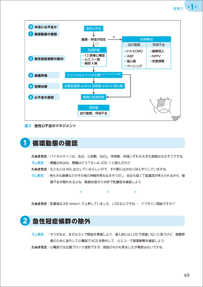 SNSで人気のうし先生が研修医へおくる「心不全患者さんを目の前にしたときにどうすればよいか?」がわかる指南書。個性豊かな4人の研修医と一緒に、実臨床で明日から役立つ考え方を楽しく学んでいきましょう!