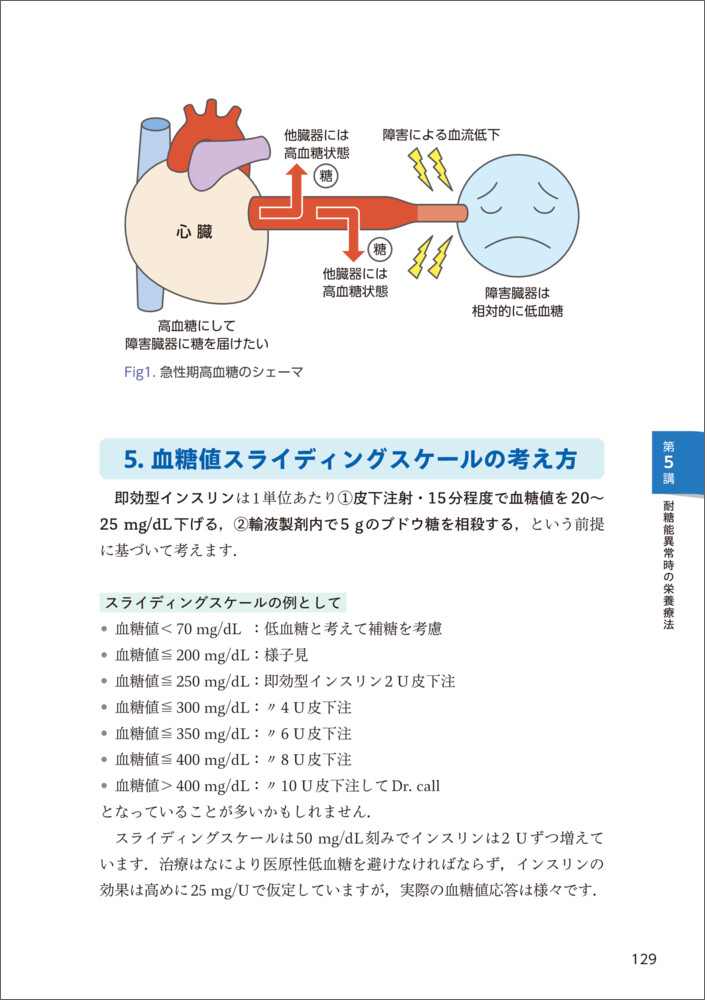1. はじめに/2. ブドウ糖代謝/3. 低血糖/4. 高血糖/5. 血糖値スライディングスケールの考え方/6. インスリン吸着による効果減弱/7. インスリンの働き/8. 高血糖に対する強化インスリン療法/9. 血糖異常の対処/10. インスリンの具体的な管理/11. 熱量制限のジレンマ/12. はじめにの答え/13. 高血糖症候群と早期EN