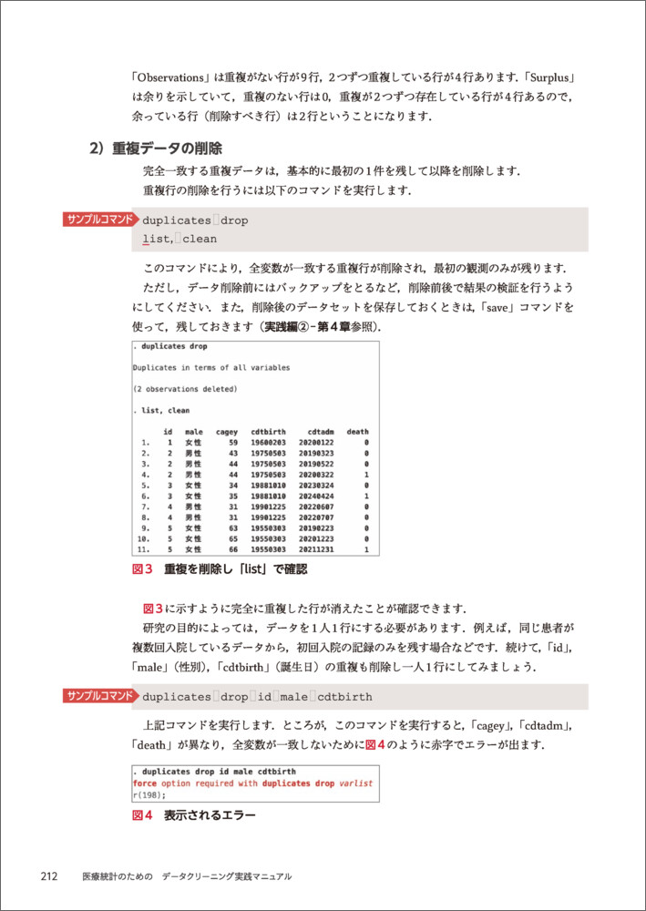 - 【本書名】医療統計のための データクリーニング実践マニュアル〜エラーを起こさず、効率よく行うデータの入力・整理・処理 ExcelとStataを使って解説