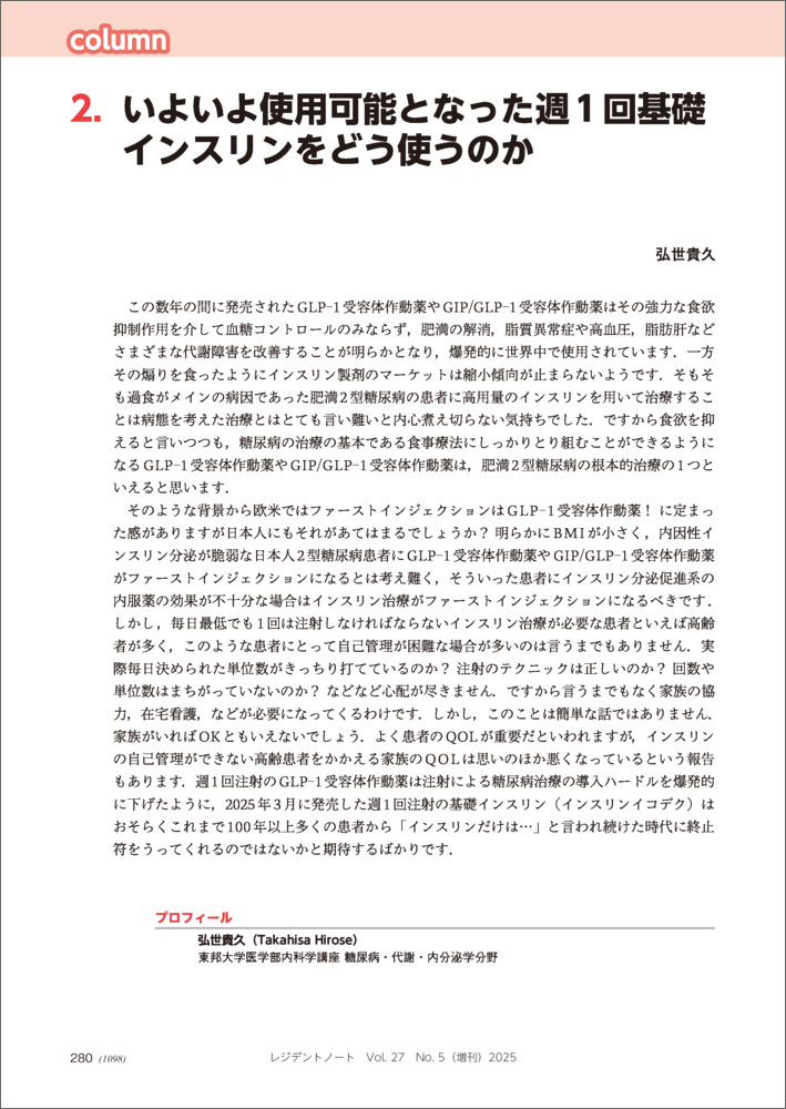 2. いよいよ使用可能となった週1回基礎インスリンをどう使うのか【弘世貴久】