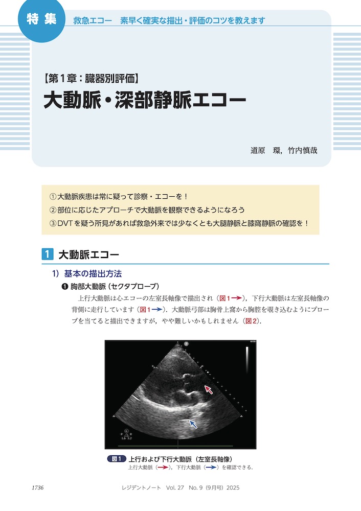 エコーでの適切な評価はきれいな描出から!肺エコーや心エコーなどの部位別評価からFAST,超音波ガイド下穿刺まで,救急での正確な病態把握と処置につなげる描出・判読&評価のテクニックを手取り足取り教えます.