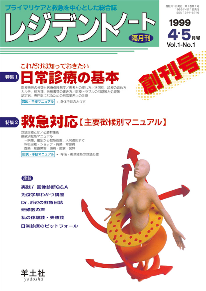 特集1 これだけは知っておきたい日常診療の基本 .特集2 救急対応[主要徴候別マニュアル].創刊号は,臨床研修を始めるにあたりまず必要となる2大テーマを特集しました.意外に教えられていない「日常診療の基本」,とっさの急患,当直時に困らないための「救急対応」.その他,実践的な手技マニュアルや症例検討ももりだくさん.先輩医師からのアドバイスや教訓,救急エッセイなど,連載コーナーも充実.「これまでなかった!」「こんな雑誌が欲しかった!」きっとそう言っていただけます.ぜひご購読を!