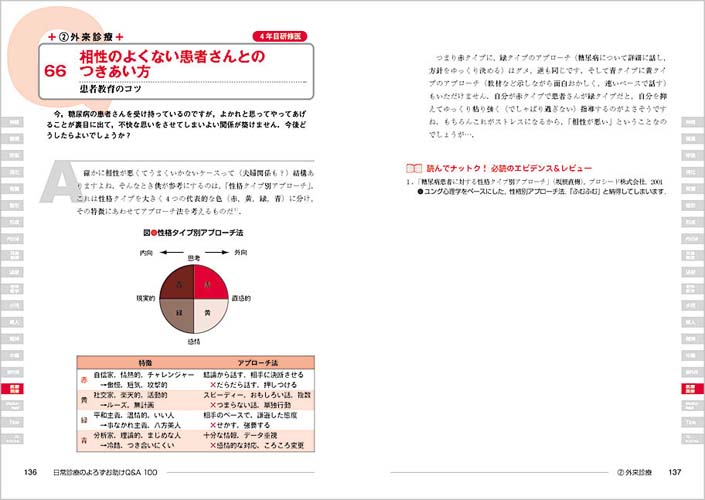 評者も幅の広い,というかどうでもよい雑学には多少の自信があったが本書の100個の困り話にはまいった.打率でいうとマリナーズのイチロー選手と争うかもしれない.国試レベルなら不合格である.Q14PORTスタディ,Q37のSAD CAGES,Q51のCDC criteria,Q99のAMAぐらいはなんとか内野ゴロぐらいになるだろうが,全くボールにかすらないタマがいくつもあった.