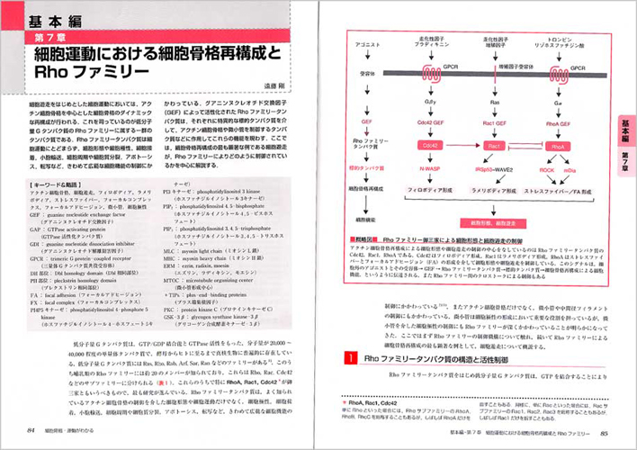 1.Rhoファミリータンパク質の構造と活性制御 2.Rhoファミリーによるアクチン細胞骨格の制御を介した細胞遊走 3.Rhoファミリー内のクロストークによる制御 4.Rhoファミリーによる微小管の制御と細胞極性